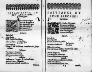 The page belongs to a well-established humanist tradition of colloquia (conversational manuals used across sixteenth-century Europe.) Figures such as Desiderius Erasmus (1466 – 1536), Sebald Heyden (1499 – 1561) and Johannes Posselius (1528 – 1591) composed or disseminated dialogic texts designed for classroom use. Erasmus’ Colloquia familiaria, first published in 1518 and continuously expanded, became one of the most influential pedagogical works of the early modern period; structured conversations intended to cultivate fluency, rhetorical sensitivity and moral reasoning through active use of language.