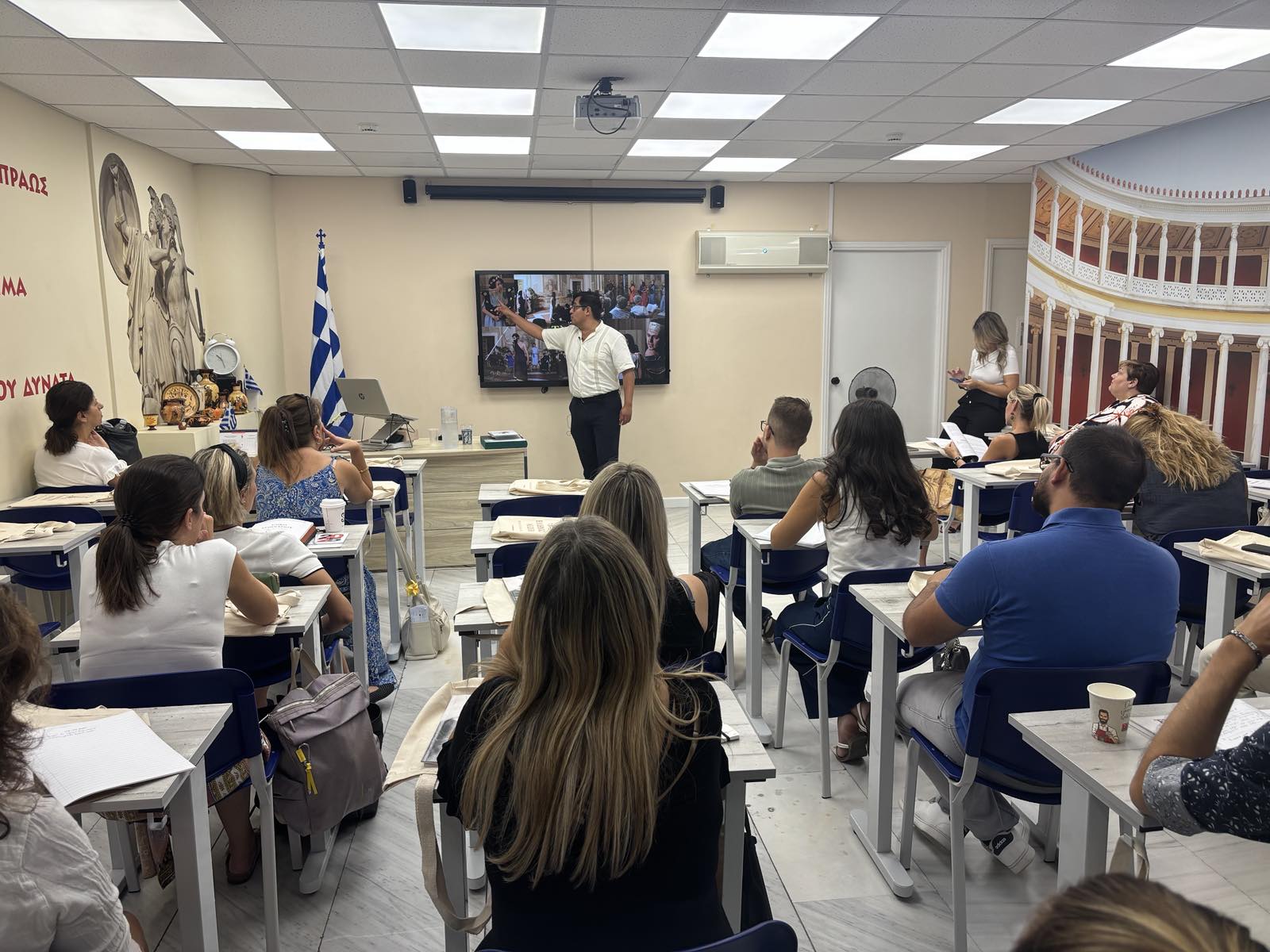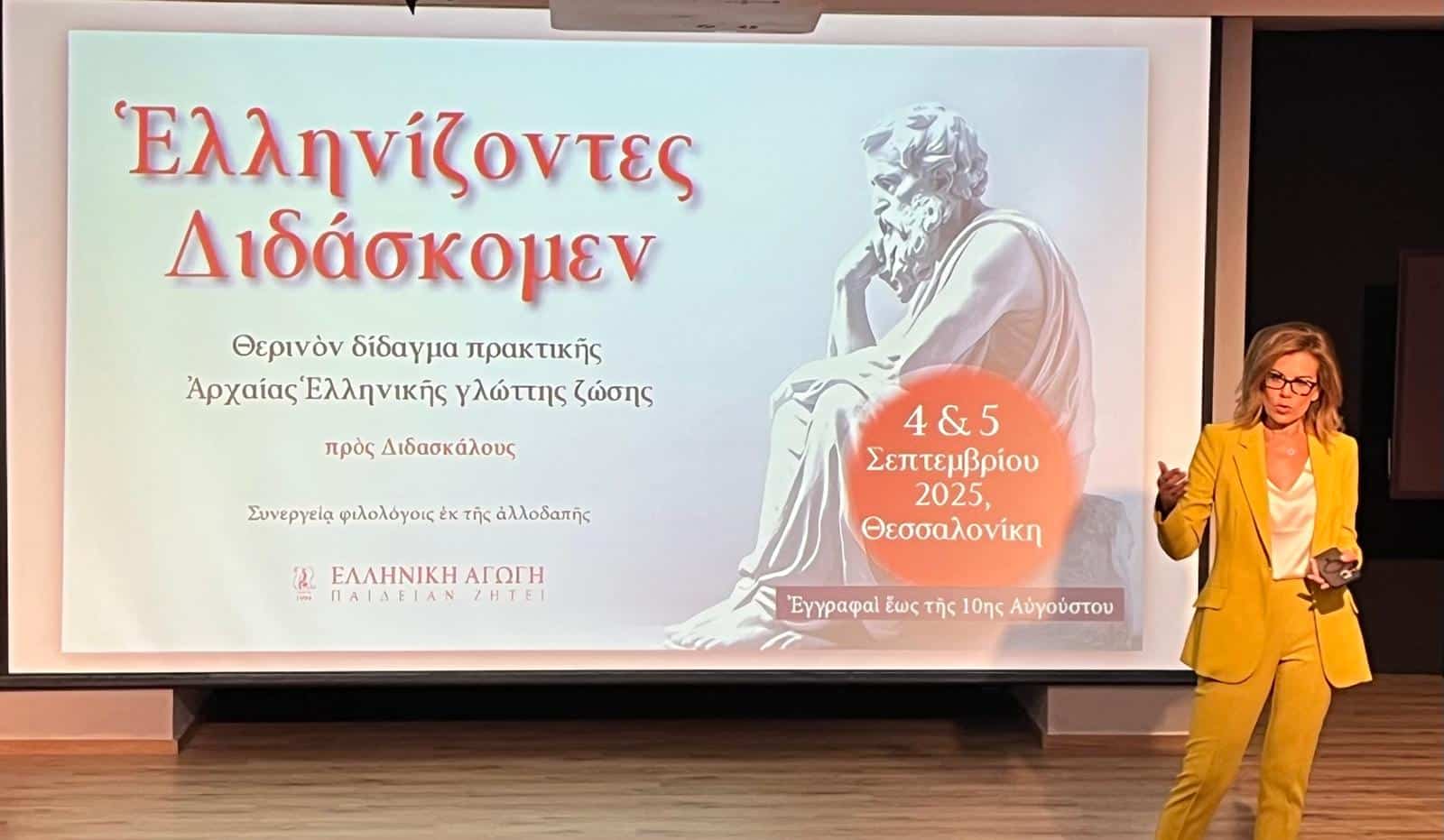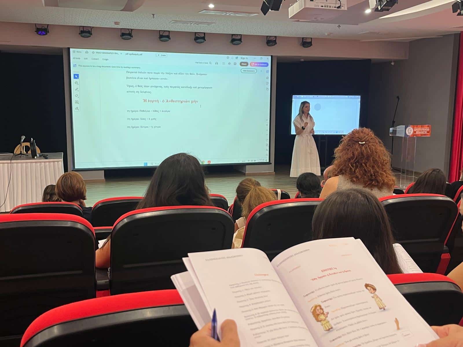 The two-day seminar Hellenizontes Didaskomen took place in Athens and Thessaloniki from 4 to 7 September 2025 with remarkable success, bringing together teachers from across Greece, both primary and secondary, from public and private schools alike. Participation was free of charge for all interested educators, since the aim of Elliniki Agogi is to promote and support the teaching of Ancient Greek in a modern, creative, and pedagogically effective way.